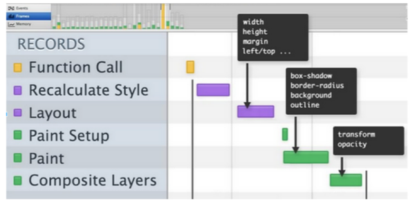 跳过 layout 与 paint 阶段,就是多使用 Layer composite 技术,即 css 的「opacity」和「transform」属性作动画。