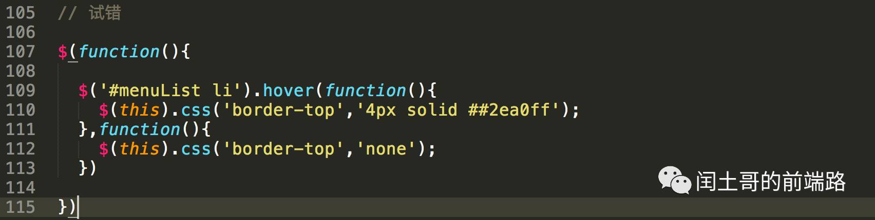 我的初步设想是,先隐藏这个border-top,然后当鼠标移入的时候,再显示出来。代码如下: